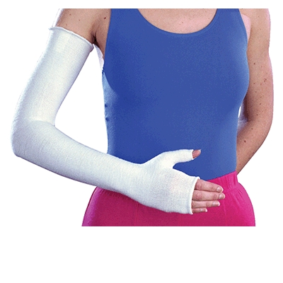 A comfortable, moisture-wicking interface for casts or braces protects skin against irritation and abrasions. Washable material stretches and conforms to arm contour.