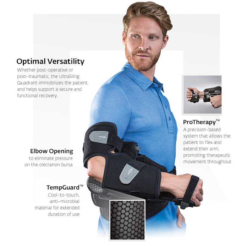 The UltraSling® Quadrant t provides four angles of immobilization in one brace for optimal versatility and inventory reduction. TheProTherapy™ precision-based system enhances the rehab process and provides a single-handed.