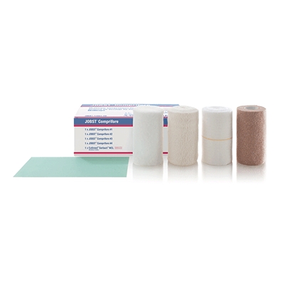 JOBST Comprifore is a multi-layer compression system containing all the components necessary to deliver effective compression for the treatment of venous leg ulcers. The Cutimed® Sorbact® Wound Contact Layer coated with DACC Technology, provides bacteria-binding action that reduces wound bioburden and inflammation that delay wound healing.