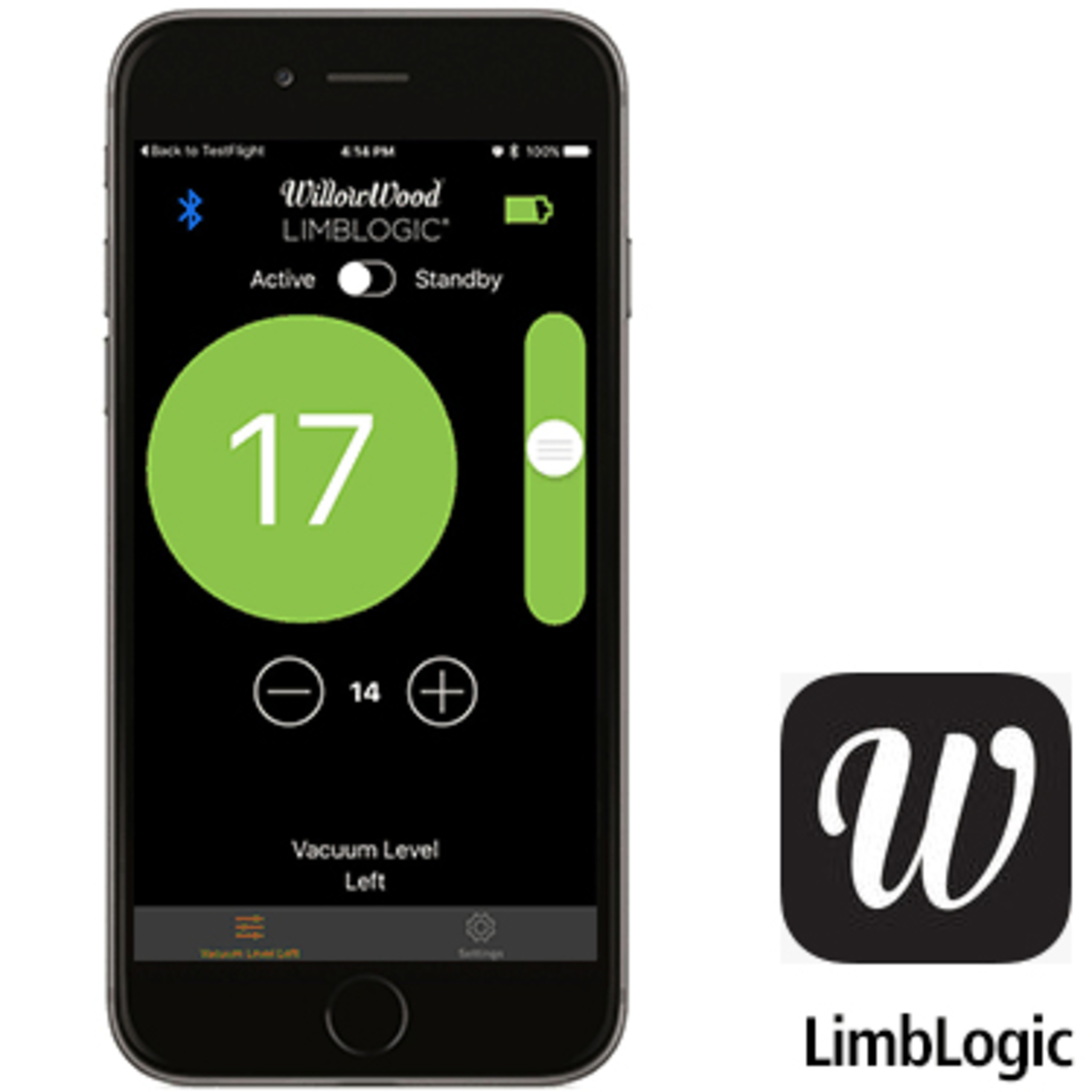 The LimbLogic® vacuum system features a small Bluetooth® Low Energy fob, inductive charging, and a choice of mounting style. The controller is offered as a distal-mount 4-hole controller to mount in line with a prosthesis or, when clearance is a concern, a side-mount to place on the side of a socket. The system continually monitors a socket's vacuum level within a set range, maintaining a secure fit. Amputees may use the handheld fob or their iPhone or iPad to increase or decrease the vacuum level as desired. The LimbLogic® Controller is waterproof in fresh water to a depth of 3 meters (10 feet) for up to 12 hours at a time. The handheld fob should not be exposed to water.