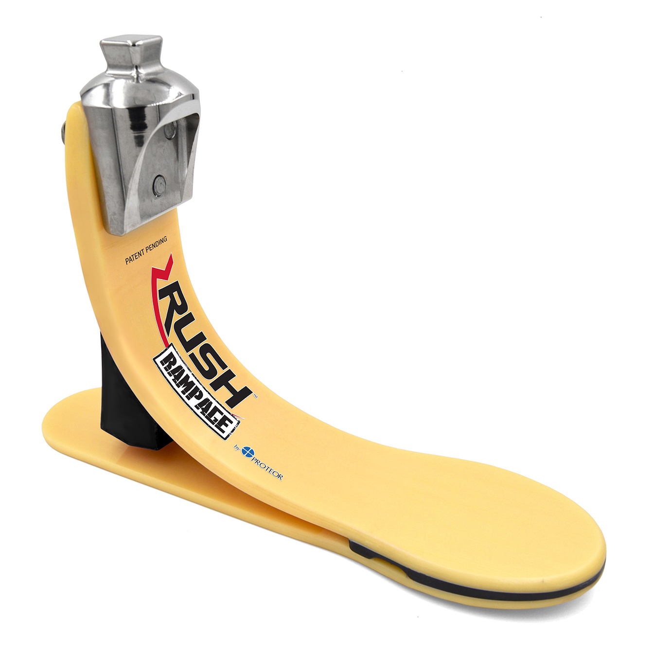 The RUSH RAMPAGE takes the smooth roll-through, increased comfort, and all-terrain capability of its predecessors and creates a new, more cosmesis-friendly option. The RUSH RAMPAGE is designed for individuals seeking a blend of both cosmetic, and high-performance capabilities found in the RUSH Foot® Collection.