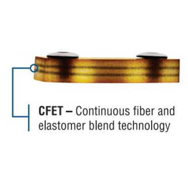 - Combination of flexible elastomer and continuous fiber blend for rigidity allows for optimum balance of smooth movement and rigid support